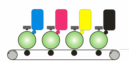 ფერადი ბეჭდვის პრინციპი თითქმის იგივეა, რაც შავ-თეთრი ლაზერულის, “მცირე” გამონაკლისის გარდა – ერთის მაგივრად გამოიყენება ოთხი ფოტობარაბანი, ოთხი საღებავი და ოთხი გამოსახულებიდან, ერთის მისაღებად საჭირო, განსხვავებული სისტემა. ამიტომ გასაკვირი არაა, რომ ანაბეჭდის თვითღირებულება გაცილებით მაღალია.